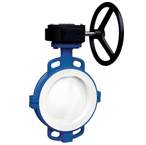 該閥門采用分體式閥體設(shè)計(jì),閥體基材可選用鑄鐵、鑄鋼或不銹鋼。 其核心部件——蝶板與閥體內(nèi)壁均采用氟塑料(F46)全襯里技術(shù),形成完整的耐腐蝕隔離層。密封系統(tǒng)結(jié)合襯氟塑料蝶板的球形密封表面與閥座基部的硅橡膠襯墊,通過四級加載彈性結(jié)構(gòu)實(shí)現(xiàn)雙向承壓與零泄漏性能。 閥軸采用特殊設(shè)計(jì),確保其不與腔內(nèi)流體介質(zhì)接觸,支持不拆卸管道直接更換閥軸,極大簡化了維護(hù)流程。